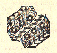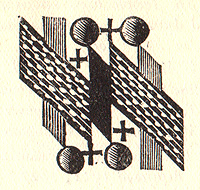 EndpapersNewly designed endpapers replaced the Reginald Knowles design used for Everyman's books since 1906. In 1935, the endpapers consist of and 'E' and 'L' over a scallop-like design (top). In 1936, the endpapers were again redesigned to use an abstract repeating pattern (bottom), which persisted until the larger format redesign of 1953. | |||||||